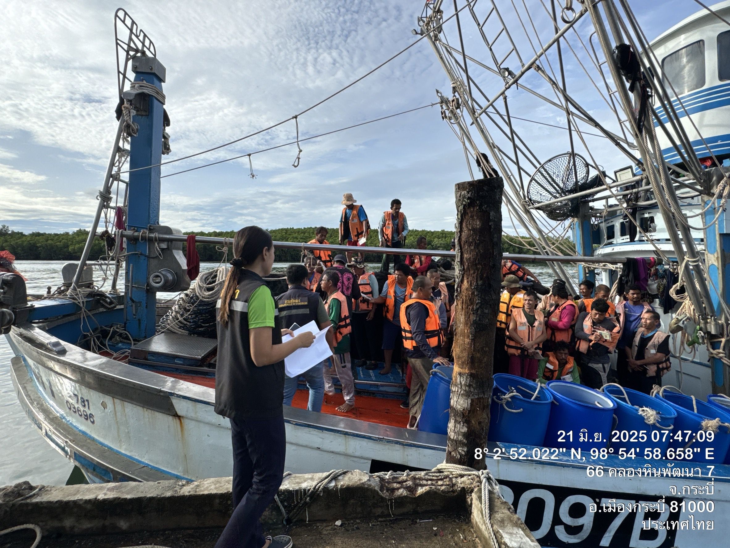 💢ศคท.จว.กบ. บูรณาการร่วมกับชุดสหวิชาชีพประจำศูนย์ควบคุมการแจ้งเรือเข้าออกกระบี่ ตรวจเรือประมงหน้าท่าเพื่อป้องกันและปราบปรามการทำประมงผิดกฎหมาย การใช้แรงงานผิดกฎหมาย การบังคับใช้แรงงาน และการค้ามนุษย์ บนเรือประมง ณ ท่าเทียบเรือน้ำลึก ต.ไสไทย อ.เมือง จว.กระบี่