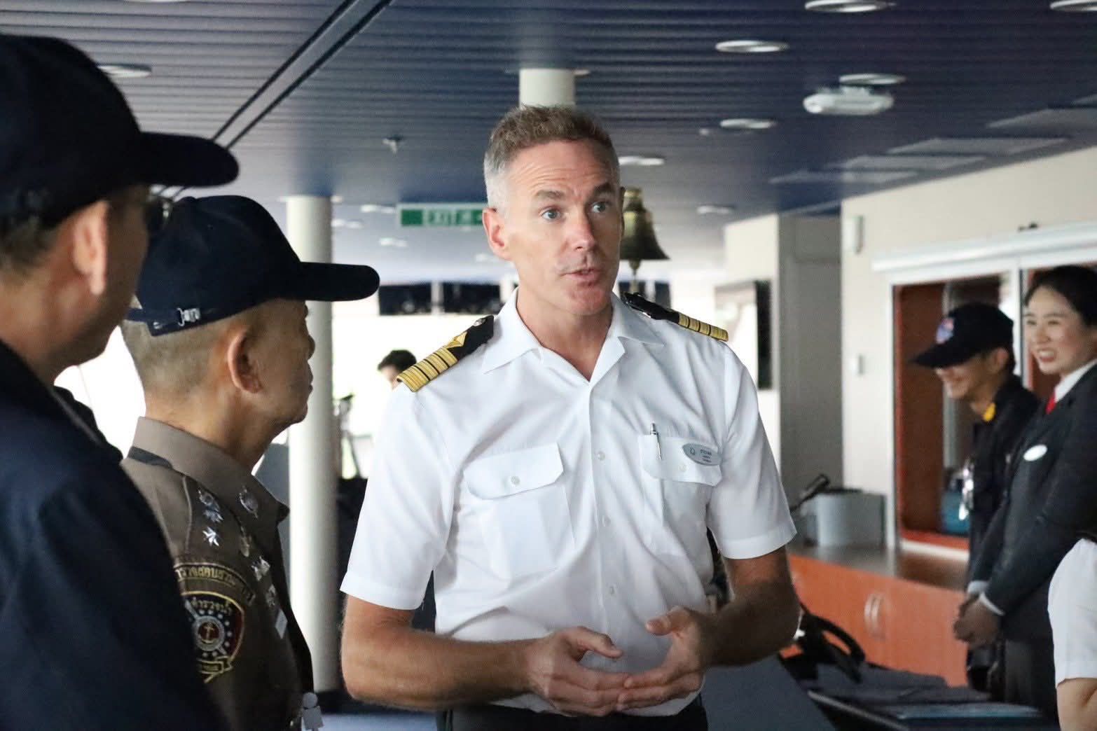 ️ Following the ceremony, the delegation boarded the Genting Dream cruise ship to observe the simulated scenarios, including evacuation of passengers and crew using tender boats, rescue operations for passengers unable to board the tender, and firefighting exercises conducted by Phuket Provincial Administrative Organization and HTMS Panyi.