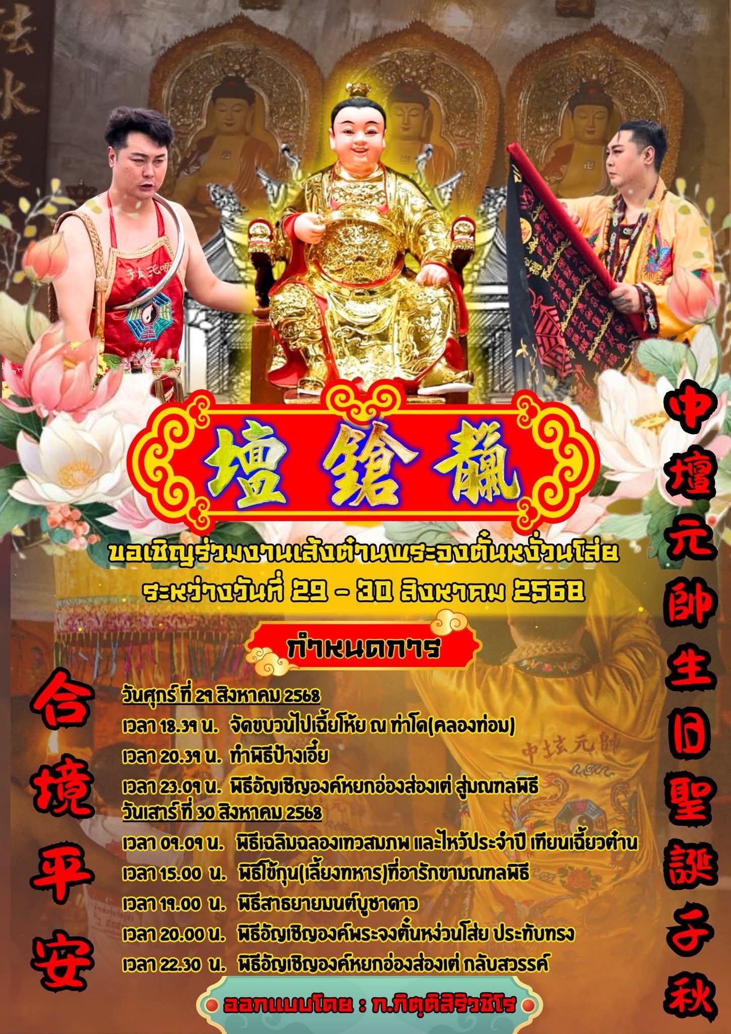 ขอเชิญร่วมงานเส้งต๋านพระจงตั๋นหง่วนโส่ย ณ เทียนเฉี้ยวต๋าน บ้านกำนันไข่คลองท่อม กระบี่ วันที่ 29 - 30 สิงหาคมคม 2568 ___