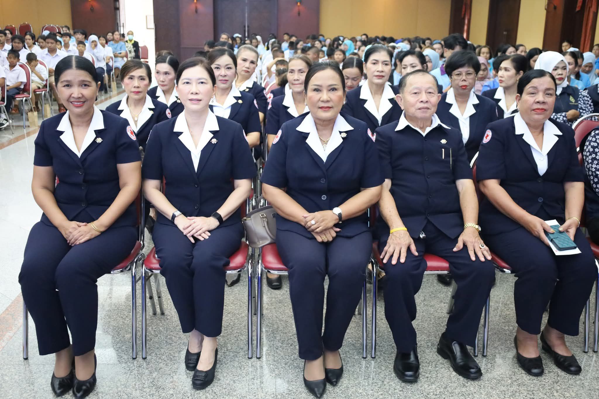 พร้อมด้วย นางศรินทิพย์ ศีลาเทวากูล นายกเหล่ากาชาดจังหวัดกระบี่ หัวหน้าส่วนราชการ สมาชิกเหล่ากาชาดจังหวัดกระบี่ แม่บ้านมหาดไทยจังหวัดกระบี่ บรรดาครูและนักเรียนที่มาร่วมงาน ณ ห้องประชุมสุดมงคล ชั้น 2 สำนักงานเทศบาลเมืองกระบี่