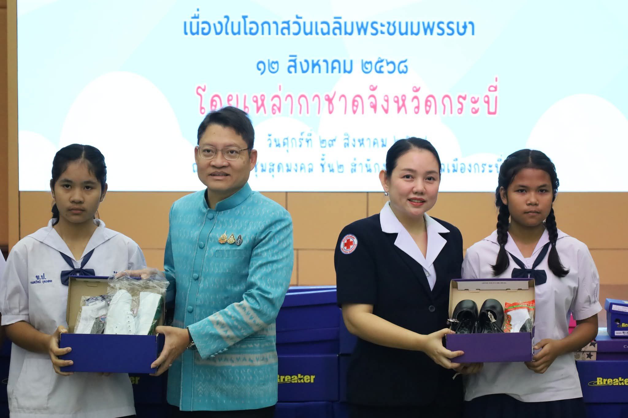 จังหวัดกระบี่จัดโครงการ “#มอบก้าวที่มั่นใจให้น้อง” เพื่อเฉลิมพระเกียรติสมเด็จพระนางเจ้าสิริกิติ์ พระบรมราชินีนาถ พระบรมราชชนนีพันปีหลวง เนื่องในโอกาสวันเฉลิมพระชนมพรรษา 12 สิงหาคม 2568 และโครงการเหล่ากาชาดจังหวัดกระบี่ มอบทุนการศึกษา ประจำปีงบประมาณ พ.ศ. 2568 .