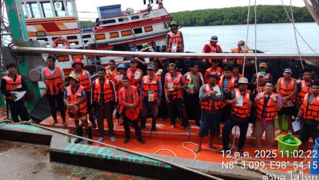 ทั้งนี้ ดำเนินการตรวจเรือประมงแจ้งเข้า (PI) จำนวน ๒ ลำ ชื่อเรือก.สินสมุทรนำโชค ๑๑๑ มีลูกเรือทั้งหมด ๕๗ คน เป็นคนไทย ๑๘ คน เมียนมา ๘ คน กัมพูชา ๑๑ คน ไม่พบการกระทำผิด กฎหมายตามพรก.การประมงและกฎหมายอื่นที่เกี่ยวข้องตลอดจนเน้นย้ำให้ลูกเรือใส่ชูชีพ ทุกครั้งขณะปฏิบัติงานในเรือเพื่อความปลอดภัย และประชาสัมพันธ์ให้ผู้ประกอบการ และผู้ควบคุมเรือประมงติดตามข่าวสารจากกรมอุตุนิยมวิทยา เรื่องสภาพอากาศคลื่นลมในทะเล และอื่นๆเพื่อความปลอดภัย ผลการปฏิบัติเป็นไปด้วยความเรียบร้อย