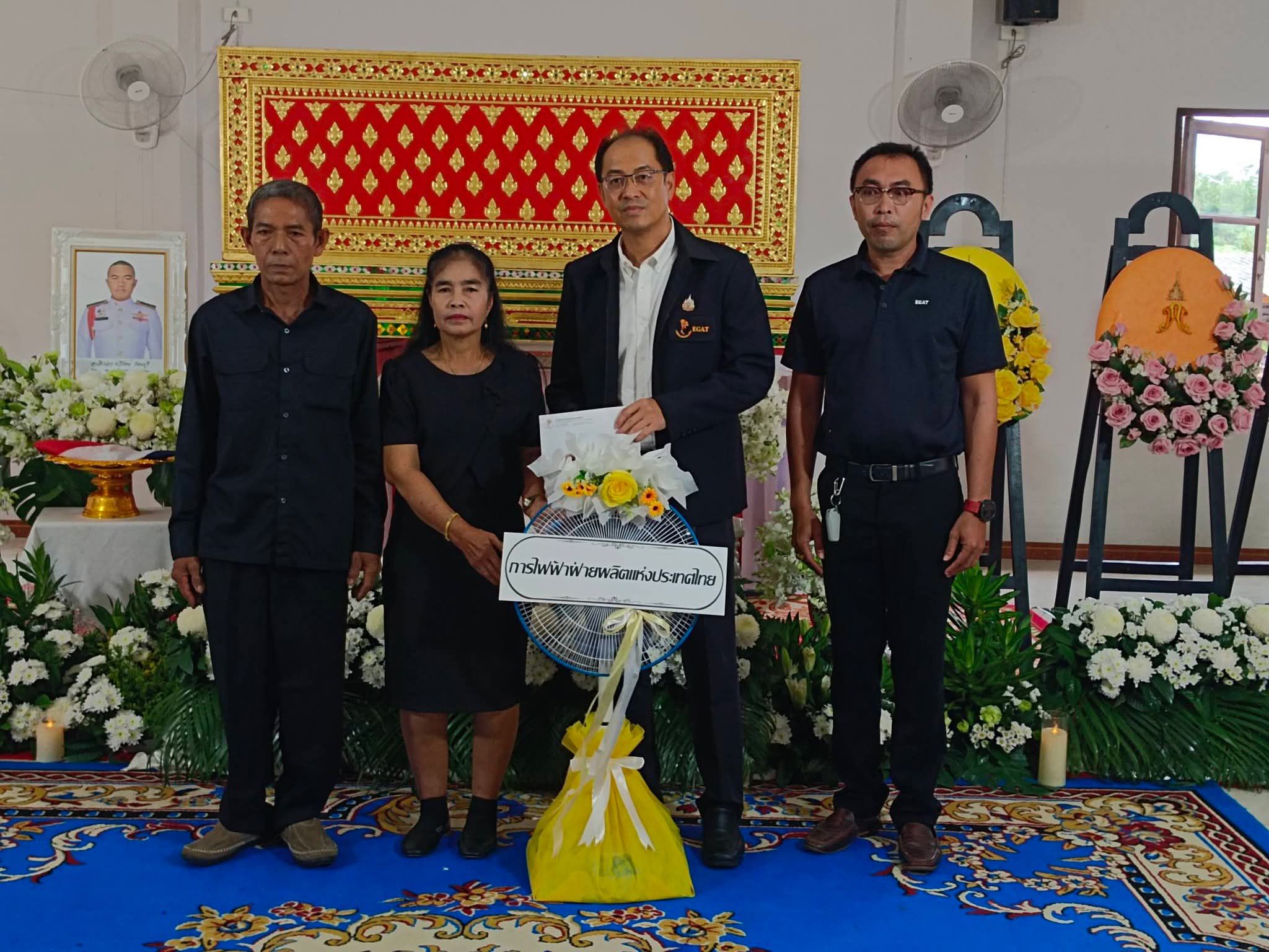 💥นายประภากร เตชะประดิษฐ์ ผู้อำนวยการโรงไฟฟ้าภาคใต้ และคณะผู้ปฏิบัติงาน ร่วมวางพวงหรีด สดุดีวีรชน จ.ส.ต.ทวีรัตน์ รัตนบุรี กำลังพลที่เสียชีวิตจากเหตุการณ์ความไม่สงบบริเวณชายแดนไทย – กัมพูชา พร้อมทั้งมอบเงินสนับสนุน จำนวน 5,000 บาท และสนับสนุนน้ำดื่ม “น้ำใจ กฟผ.” จำนวน 600 ขวด ในงานบำเพ็ญกุศลฯ ณ วัดถ้ำโกบ ต.หน้าเขา อ.เขาพนม จังหวัดกระบี่