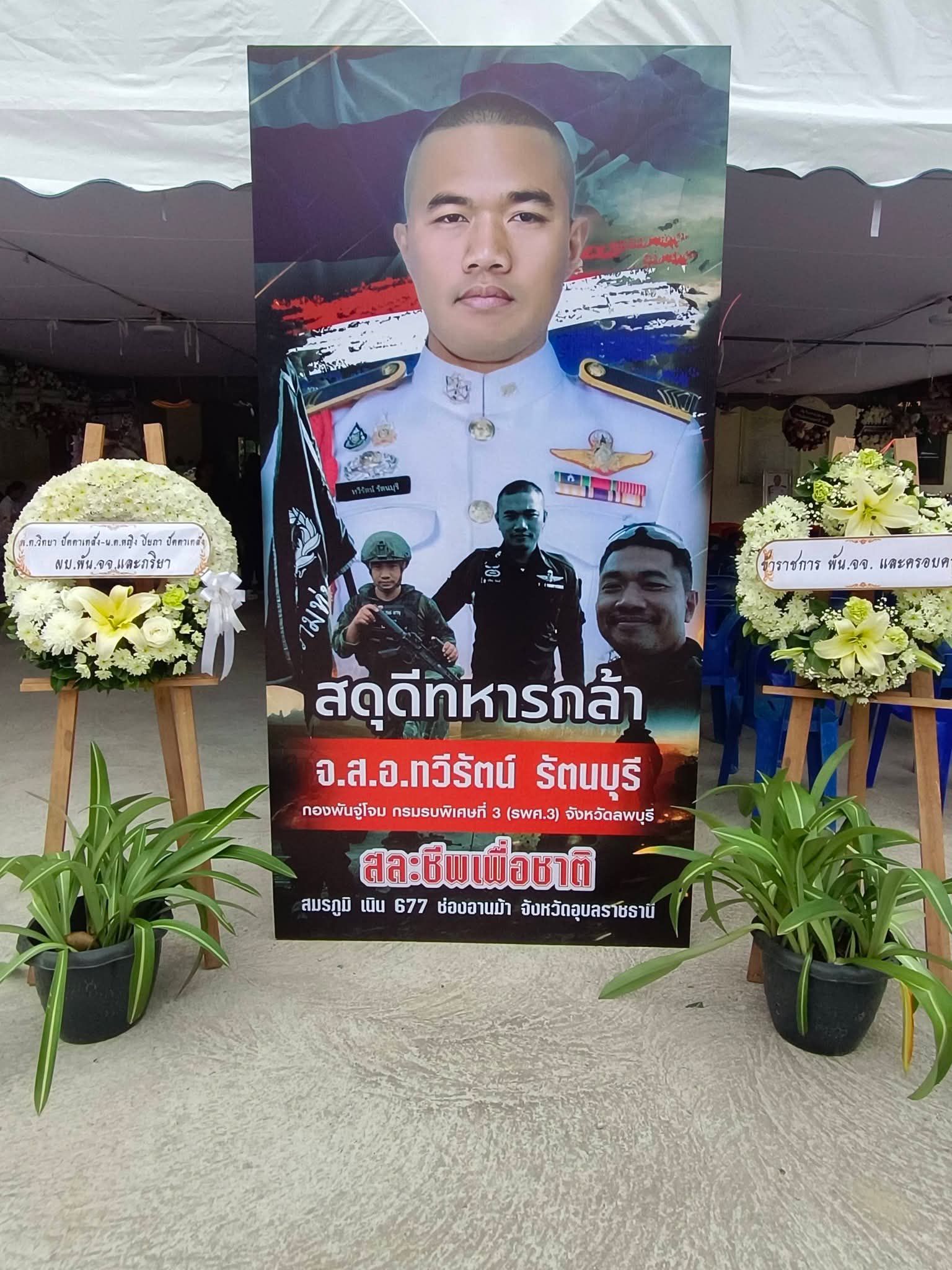 💥จ่าสิบเอกทวีรัตน์ รัตนบุรี อายุ 37 ปี ตำแหน่งหัวหน้าส่วนระวังป้องกัน ชุดจู่โจม สังกัดกองพันจู่โจม เสียชีวิตจากอาวุธสงครามจากฝ่ายตรงข้ามบริเวณยอดเนิน 677 ช่องอานม้า อ.น้ำยืน จ.อุบลราชธานี เมื่อวันที่ 13 ธันวาคม 2568