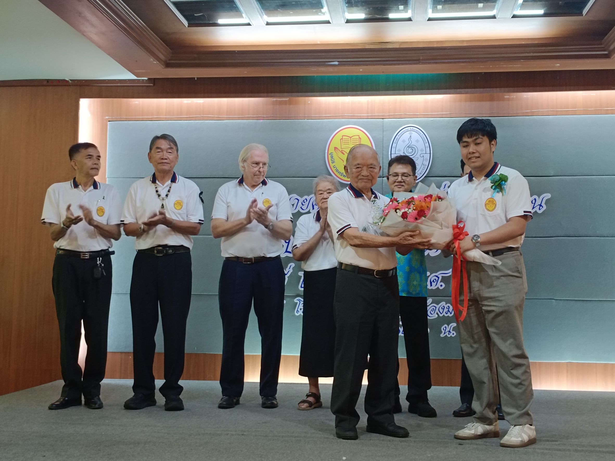 💥นายศิวกร เผือกธารา ตัวแทนนักเรียนทุนฯ มอบดอกไม้ให้ ประธานที่ปรึกษากิตติมศักดิ์ และกล่าวความรู้สึกที่ได้รับโอกาสและรับการช่วยเหลือเงินทุนศึกษา จนสามารถจบการศึกษาจากจุฬาลงกรณ์มหาวิทยาลัย คณะจิตวิทยา และประกอบอาชีพในกิจการของตัวเองได้ในปัจุบันและกล่าวขอบคุณในภาพรวมของนักเรียนทุนสึนามิ และพร้อมที่ช่วยเหลือ ผู้ที่ได้รับโอกาสมาด้วยกัน และตอบแทบคุณมูลนิธิฯด้วยความเต็มใจอย่างยิ่ง