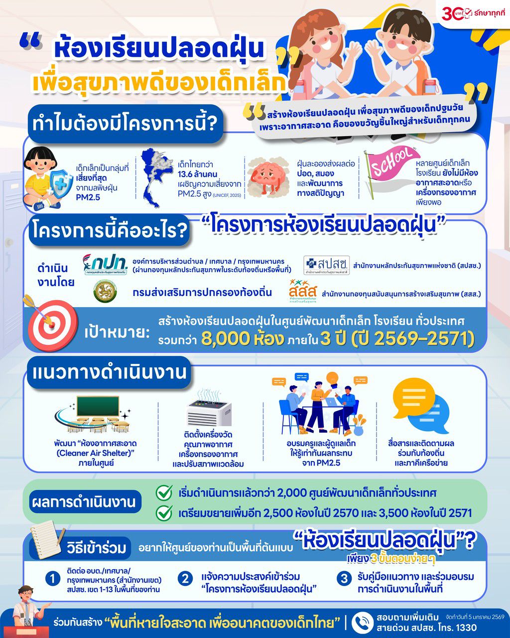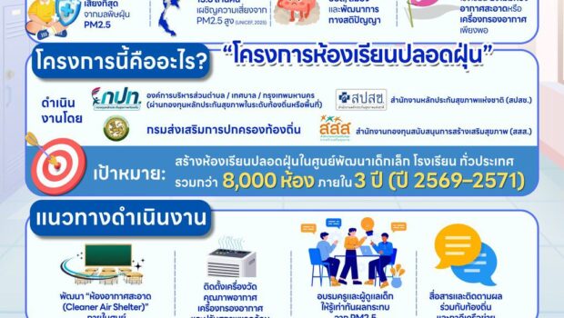 ขอเชิญชวนเทศบาล อบต. และศูนย์พัฒนาเด็กเล็กทั่วประเทศ เข้าร่วม “ห้องเรียนปลอดฝุ่นเพื่อสุขภาพดีของเด็กไทย”