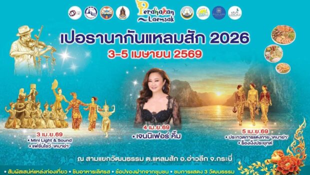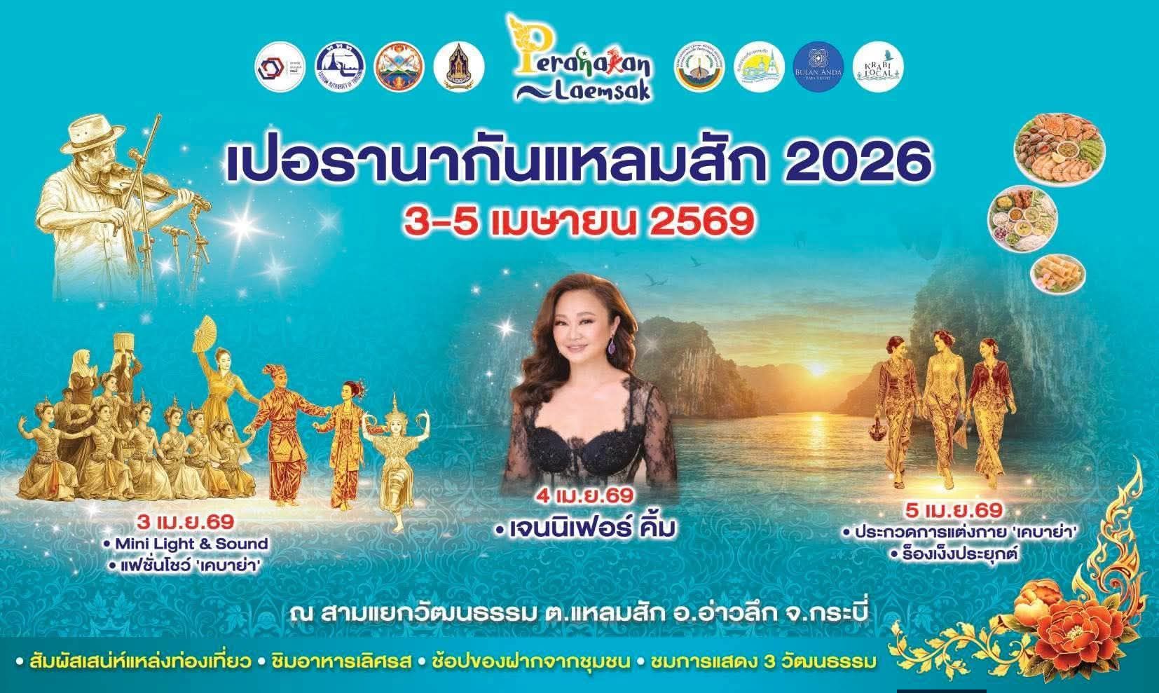 ✨ ชวนเที่ยวงาน “เปอรานากันแหลมสัก 2026” 📅 วันที่ 3–5 เมษายน 2569 📍 ณ สามแยกวัฒนธรรม ตำบลแหลมสัก อำเภออ่าวลึก จังหวัดกระบี่