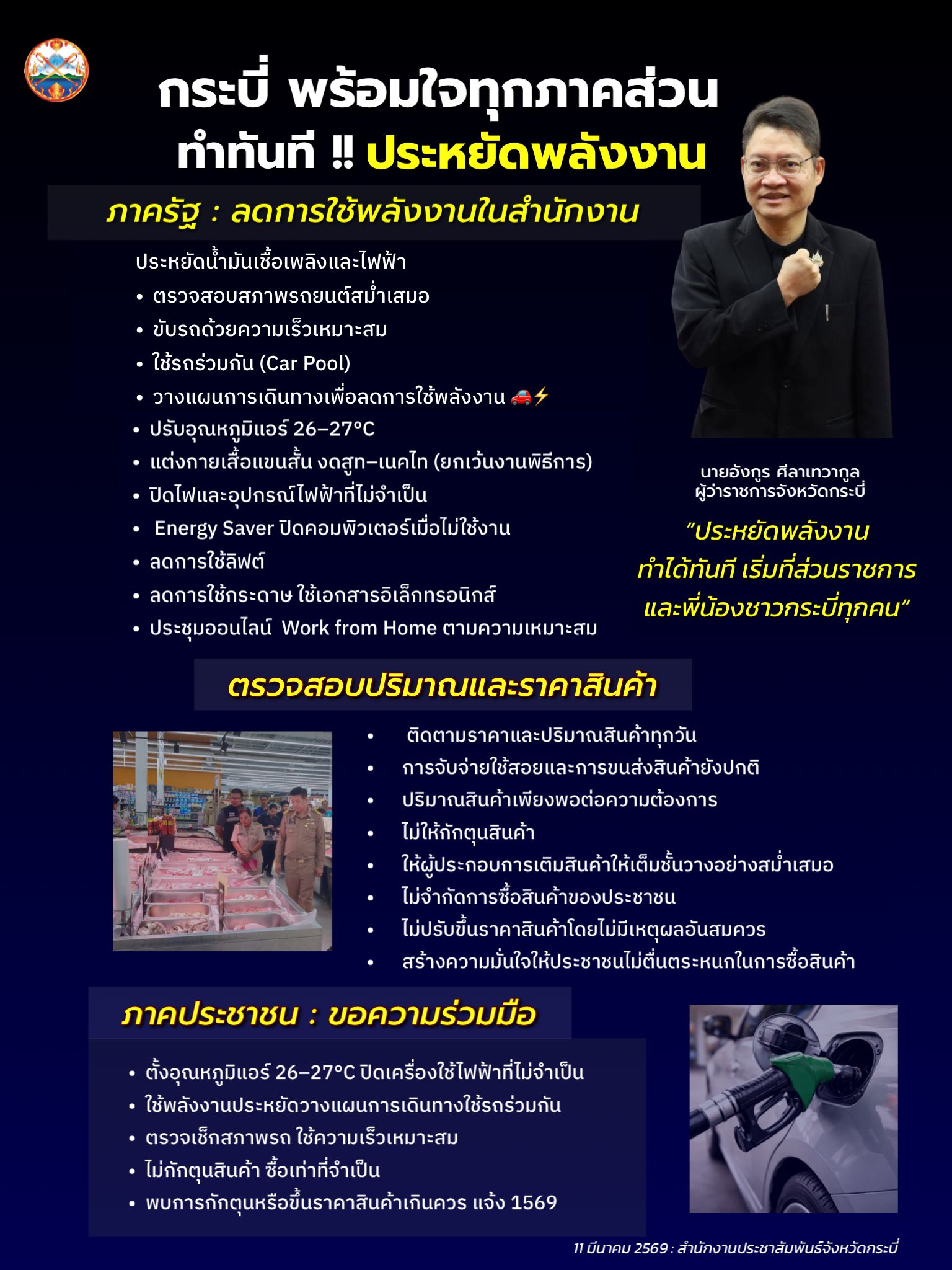 💥ผู้ว่าฯ กระบี่ ขานรับ 6 มาตรการเชิงรุก สคบ. ป้องกันฉวยโอกาสช่วงวิกฤตตะวันออกกลาง