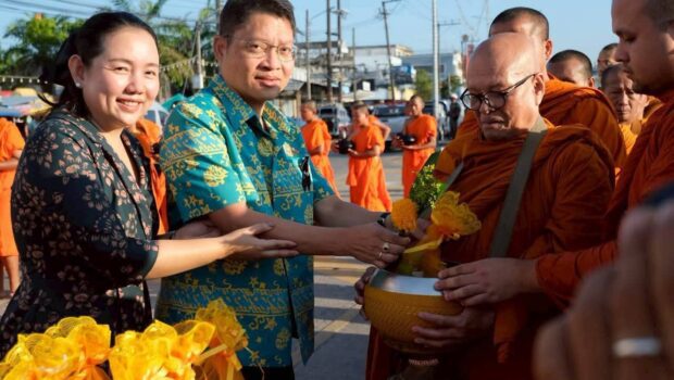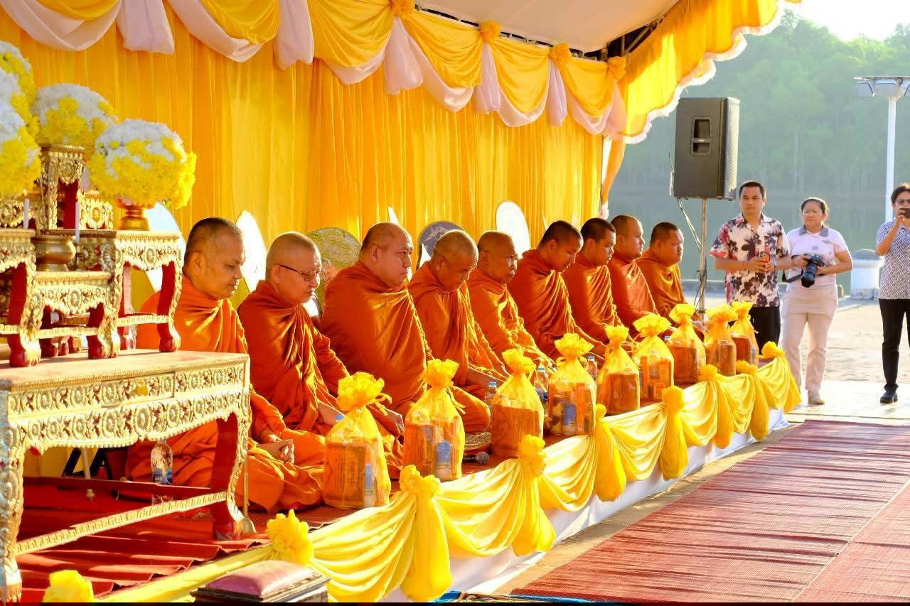 ภาพของกลุ่มพุทธศาสนิกชนที่แต่งกายด้วยชุดสุภาพและชุดพื้นเมืองที่งดงาม สะท้อนให้เห็นถึงการรักษาวัฒนธรรมอันดีงาม ทุกคนต่างอยู่ในกิริยาที่สำรวม ประนมมือรับพรและตั้งจิตอธิษฐานด้วยความสงบ การรวมตัวกันในเช้านี้ไม่ใช่เพียงการทำบุญตามประเพณี แต่เป็นการสร้างพลังบวกและความสามัคคีให้เกิดขึ้นในชุมชน