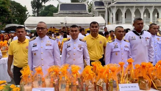 วันที่ ๒๘ กรกฎาคม ๒๕๖๗ เวลา ๐๖.๓๐ น. ณ บริเวณพระอุโบสถ วัดแก้วโกรวาราม พระอารามหลวง อำเภอเมืองกระบี่ จังหวัดกระบี่ ศรชล.ภาค ๓ โดย ศรชล.จว.กบ. น.อ.ศักดิ์สม ประดิษฐ์ รอง ผอ.สน.ฝอ.ศรชล.ภาค ๓ รักษาราชการแทน รอง ผอ.ศรชล.จว.กบ. พร้อมด้วย น.อ.วราวุฒิ สีลารักษ์ หน.ศคท.กบ. และเจ้าหน้าที่ ศรชล.จว.กบ./ศคท.จว.กบ.