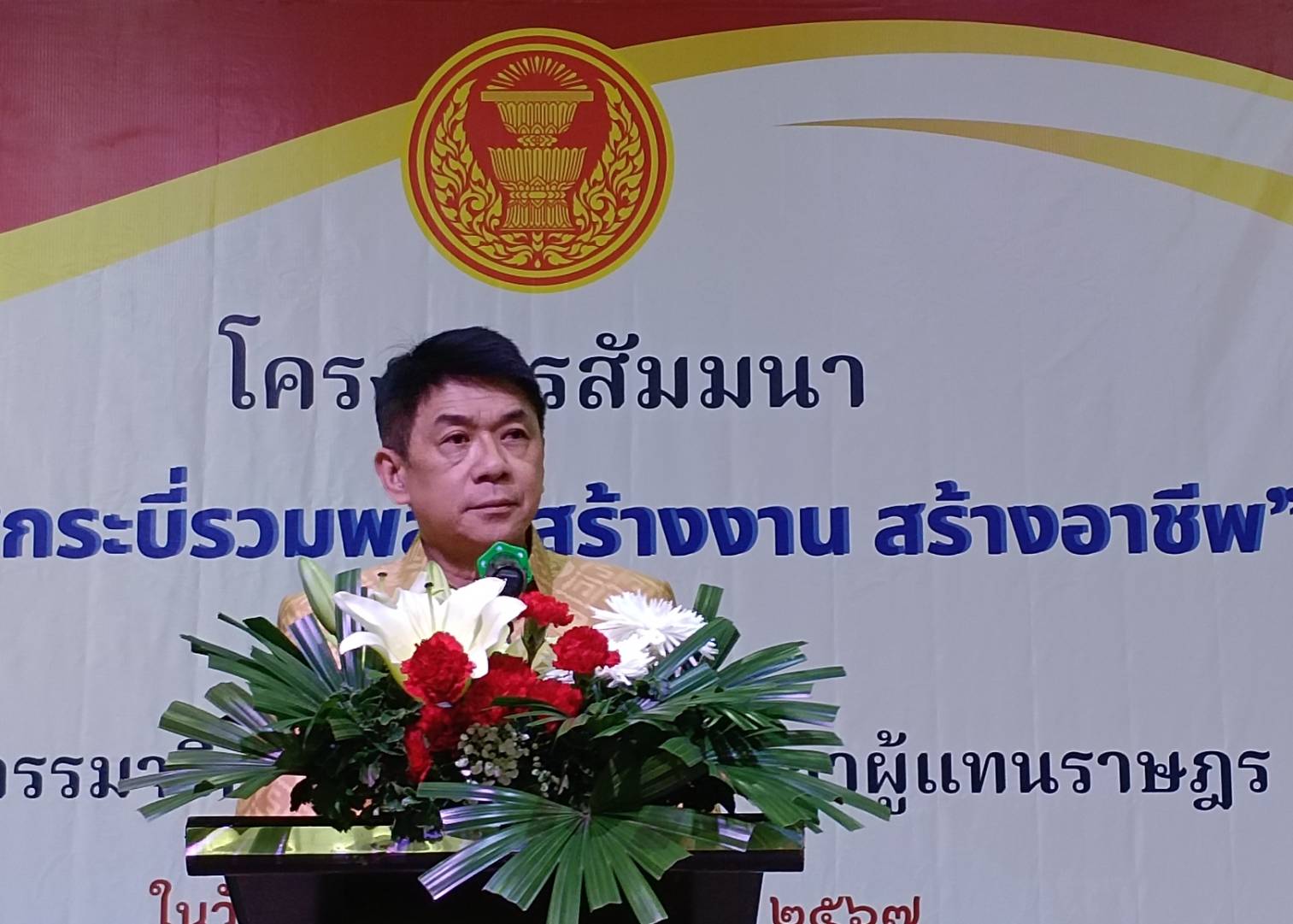 นายสฤษฏ์พงษ์ เกี่ยวข้อง ประธานคณะกรรมาธิการการแรงงานประเทศไทยกำลังมีการเปลี่ยนแปลงโครงสร้างทางประชากรครั้งสำคัญ คือการเริ่มเข้าสู่สังคมผู้สูงอายุ (Aging Society) โดยในปี 2578 จะเป็น “สังคมผู้สูงอายุระดับสุดยอด” (Super Aged society) ซึ่งทำให้มีประชากรวัยทำงานลดลง ส่งผลต่อความสอดคล้องระหว่างอุปสงค์และอุปทานของแรงงาน คือ อุปทานแรงงานลดลง ซึ่งสวนทางกับเศรษฐกิจยุคของการแข่งขันมีการขยายตัวและเจริญเติบโตอย่างต่อเนื่องทำให้ความต้องการแรงงานมีแนวโน้มเพิ่มมากขึ้น การจัดสัมมนาในวันนี้ เป็นโอกาสอันดี ที่ทุกคนจะได้รับความรู้กเพิ่มโอกาสให้ประชาชนทุกกลุ่มเป้าหมายได้เข้าถึงบริการของรัฐ ได้เข้าถึงข้อมูลอาชีพ/ข้อมูลการศึกษาได้เปิดโลกทัศน์ด้านอาชีพ รู้สภาวะและแนวโน้มตลาดแรงงาน นำความรู้ที่ได้รับไปเผยแพร่ เพื่อให้เกิดการพัฒนาตนเอง เป็นการพัฒนาคนในทุกมิติ และทุกช่วงวัยให้สามารถประกอบอาชีพ/ทำงานหรือเลือกศึกษาต่อได้เหมาะสมกับความรู้ ความสามารถ มีรายได้ที่มั่นคง ยั่งยืนและมีคุณภาพชีวิตที่ดีต่อไป