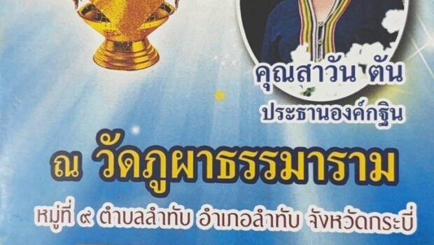 กำหนดการกฐินสามัคคี ณ วัดผูผาธรรมาราม หมู่ 9 ตำบลลำทับ อำเภอลำทับ จ.กระบี่