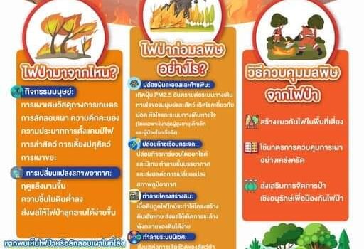 ร่วมมือกันลดไฟป่า ลดฝุ่นพิษ สู่สิ่งแวดล้อมที่ยั่งยืน ไฟป่าภัยร้ายทำลายป่าและสร้างฝุ่น PM2.5 มหาศาล