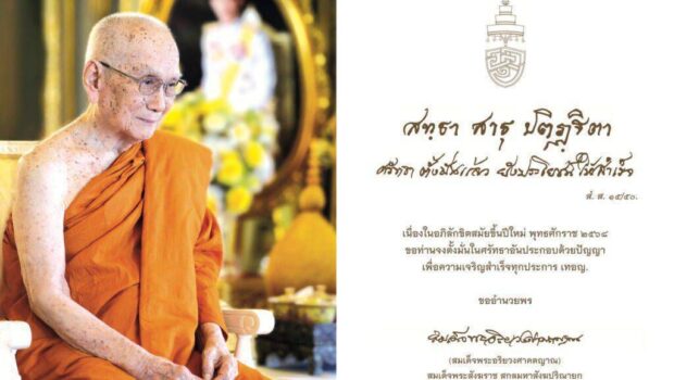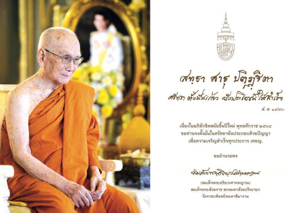 “เนื่องในอภิลักขิตสมัยขึ้นปีใหม่ พุทธศักราช ๒๕๖๘ ขอท่านจงตั้งมั่นในศรัทธาอันประกอบด้วยปัญญา เพื่อความเจริญสำเร็จทุกประการ เทอญ.”