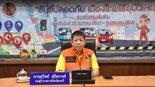 ควบคุมเข้มข้นวันที่สี่ จังหวัดกระบี่ไร้อุบัติเหตุ รองผู้ว่าฯ กระบี่ เน้นย้ำทุกหน่วยงานคุมเข้มมาตรการป้องกันและลดอุบัติเหตุทางถนน วันส่งท้ายปี 2567 .