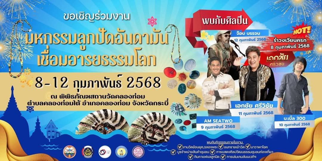 ขอเชิญพี่น้องชาวจังหวัดกระบี่ และพื้นที่ใกล้เคียง ร่วมงาน 🎉📿มหกรรมลูกปัดอันดามัน เชื่อมอารยธรรมโลก 📿