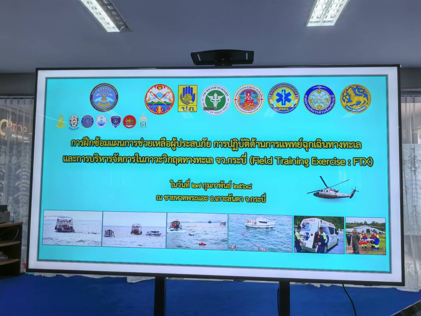 ศรชล.จว.กบ./ศคท.จว.กบ. จัดประชุมเตรียมความพร้อมการฝึกซ้อมแผนการช่วยเหลือผู้ประสบภัยทางทะเล การปฏิบัติด้านการแพทย์ฉุกเฉินทางทะเล และการบริหารจัดการในภาวะวิกฤต พื้นที่ จว.กระบี่