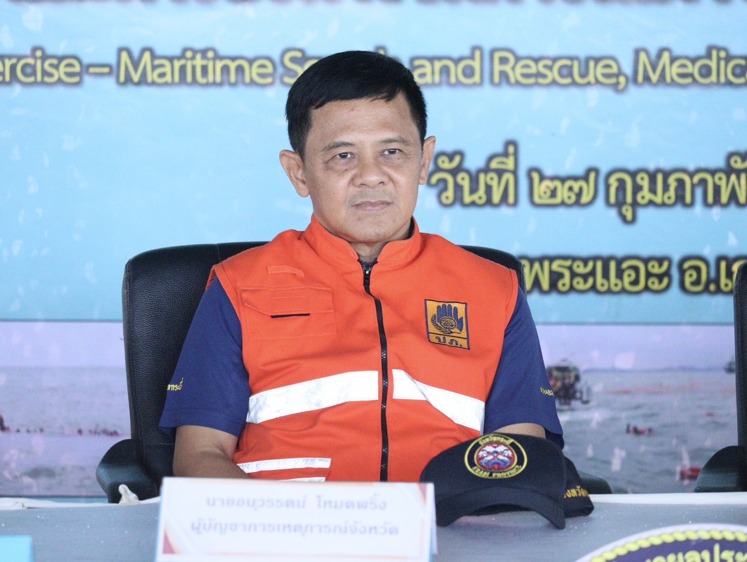 สถานการณ์สมมุติ เหตุการณ์ที่เกิดขึ้น : ในวันที่ 27 ก.พ.68 เรือ Diving ปลาดาวทอง ได้นำนักท่องเที่ยว จำนวน 100 คน ขณะเดินทางจากเกาะรอก มุ่งหน้าจะไปเกาะห้า เรือเกิดอุบัติเหตุ ถังแก๊สในห้องประกอบอาหารของเรือรั่วและเกิดประกายไฟลุกลาม และระเบิดขึ้นทำให้ท้องเรือบริเวณท้ายเกิดรูรั่วน้ำเข้าเรือ กัปตันเรือ ลูกเรือได้แจ้งให้นักท่องเที่ยวสวมชูชีพ และได้โทรแจ้งสายด่วน ศรชล.1465 ขอความช่วยเหลือเร่งด่วน