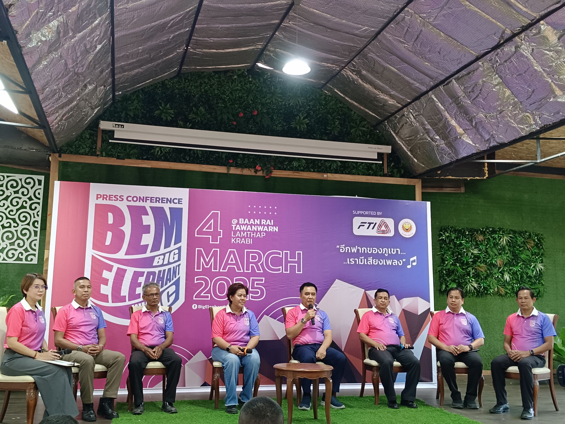 นายสมปราชญ์ ปราบสงคราม อดีตรองผู้ว่ราชการจังหวัดกระบี่ ประธานที่ปรึกษาการจัดงาน ฯ เป็นประธาน การแถลงข่าวการจัดงานคอนเสิร์ตการกุศล BEM Big Elephant Music 2025 และ BEM Music Contest 2025