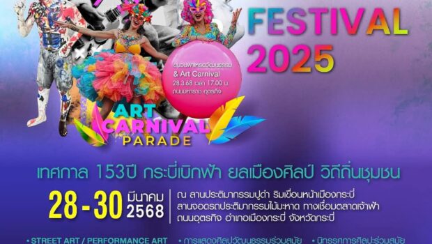 ขอเชิญเที่ยวงาน เทศกาล 153 ปี กระบี่เบิกฟ้า ยลเมืองศิลป์ วิถีชุมชน 28-30 มีนาคม 2568 ณ ริมเขื่อนหน้าเมืองกระบี่