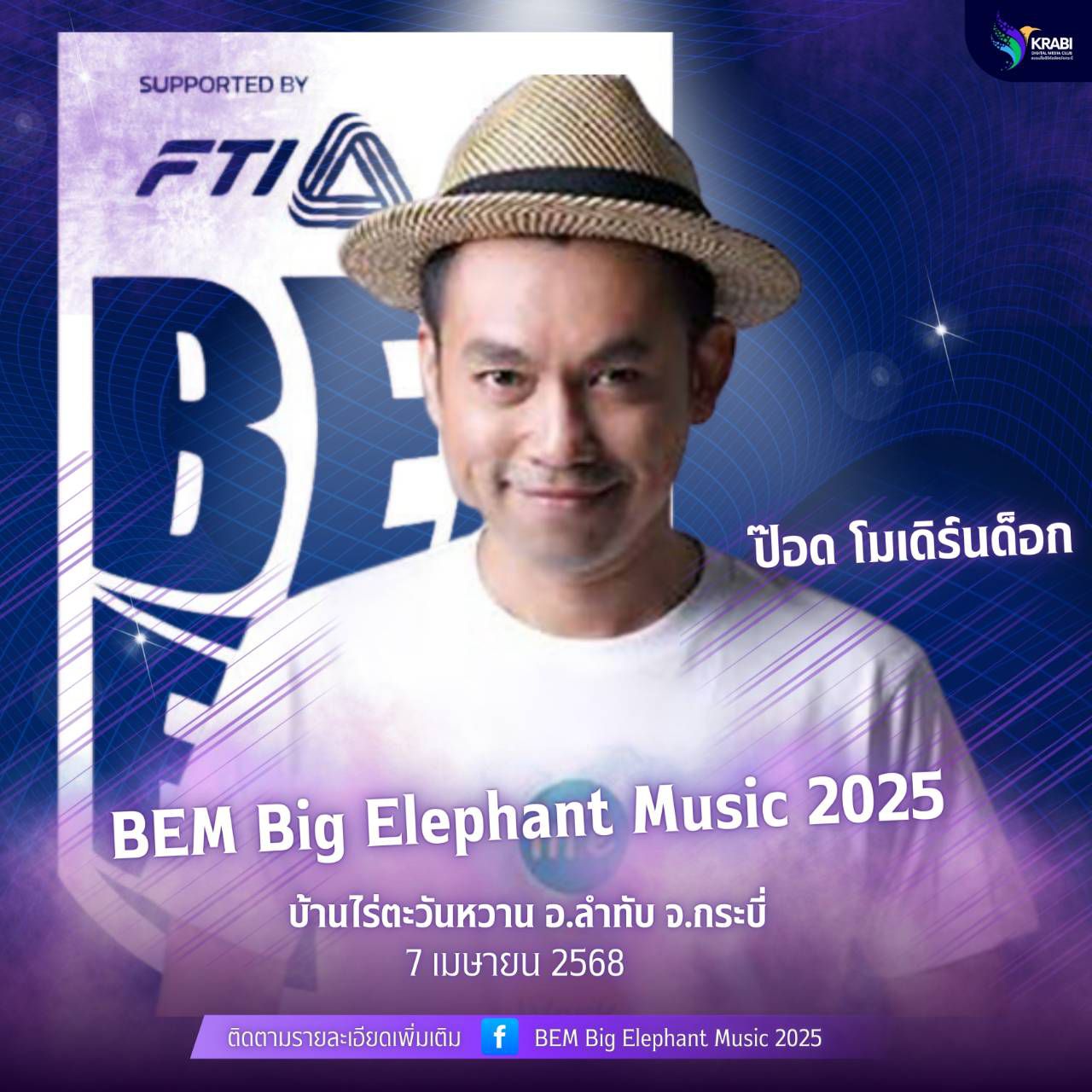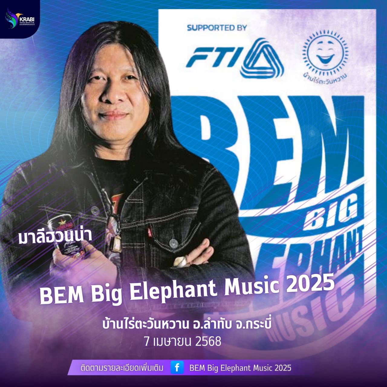 ติดตามรายละเอียดเพิ่มเติมได้ที่ เพจเฟสบุ๊ค บ้านไร่ตะวันหวาน และ เพจ Bigelephantmusic ------------------------------ #BEM2025 #Bigelephantmusic2025 #BEMMusicContest #ConcertForCharity #ลำทับสุขภาพดี #OTOPกระบี่ #บ้านไร่ตะวันหวาน #คอนเสิร์ตการกุศล #ไทยอินโดปาล์มแฟคทอรี่ #สภาอุตสาหกรรมภาคใต้ #สาวันตัน #ลำทับ