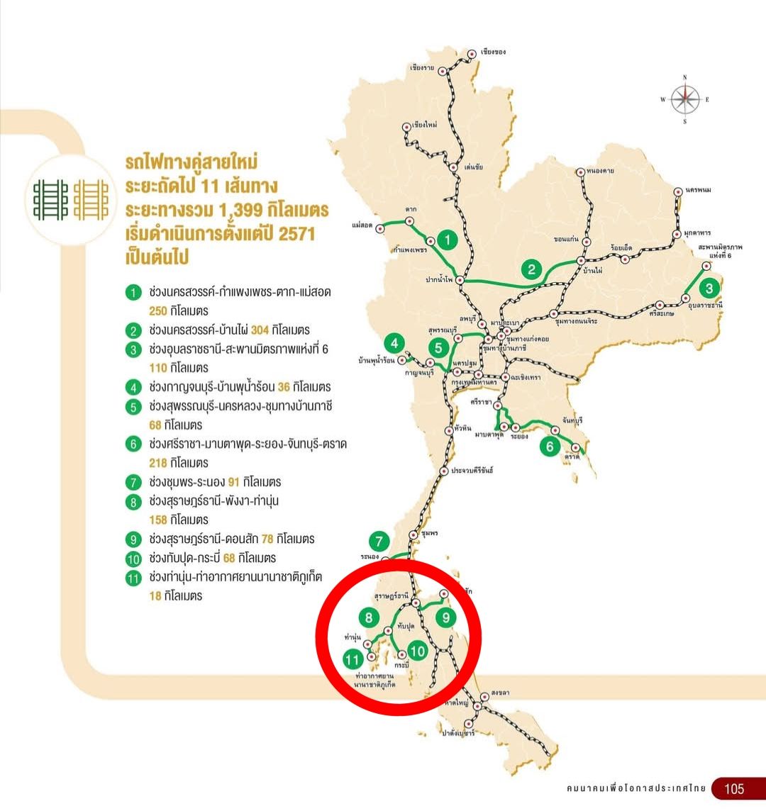 เส้นทางรถไฟกระบี่ แผนการก่อสร้างรถไฟทางคู่สายใหม่ (ระยะถัดไป) จะมีทั้งหมด 11 เส้นทาง
