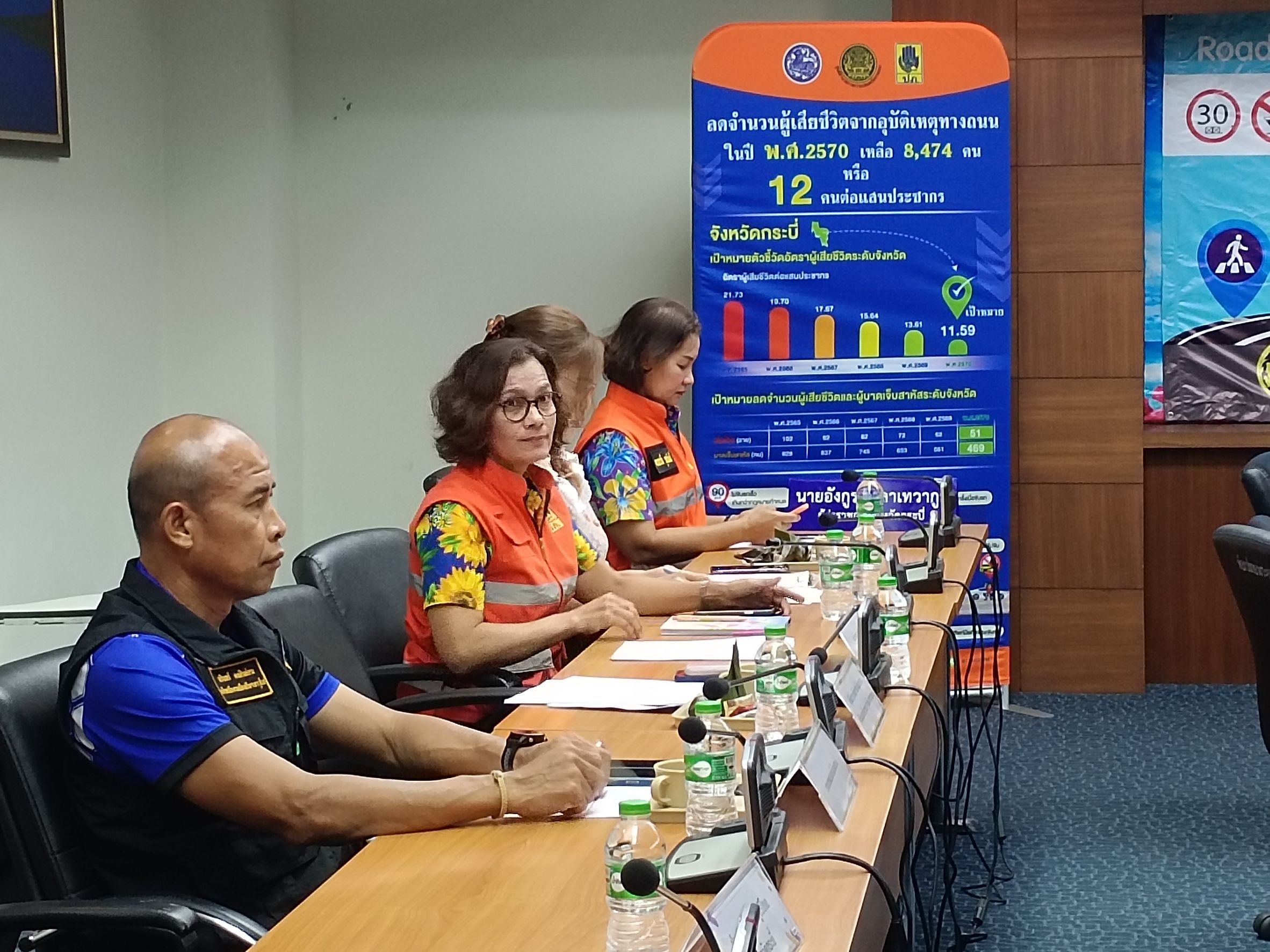 ใส่วนของจังหวัดกระบี่ ได้ดำเนินการป้องกันและลดอุบัติเหตุทางถนนและทางทะเลในช่วงเทศกาล และการขับเคลื่อนงานตลอดทั้งปี เพื่ออำนวยความปลอดภัย ลดความสูญเสียในชีวิตและทรัพย์สินให้แก่ประชาชนและนักท่องเที่ยว สำหรับเทศกาลสงกรานต์ พ.ศ.2568 นี้ หัวข้อการรณรงค์ คือ “ขับขี่ปลอดภัยเมืองไทยไร้อุบัติเหตุ” ซึ่งศูนย์อำนวยการความปลอดภัยทางถนนจังหวัดกระบี่ ได้กำหนดแผนบูรณาการดำเนินงานช่วงควบคุมเข้มข้น 7 วัน ระหว่างวันที่ 11-17 เมษายน 2568 มีเป้าหมายการดำเนินงาน จำนวนครั้งการเกิดอุบัติเหตุไม่เกิน 35 ครั้ง จำนวนผู้บาดเจ็บ (admit) ไม่เกิน 37 คน และจำนวนผู้เสียชีวิตไม่เกิน 2 ราย ดำเนินการภายใต้ 5 มาตรการ ได้แก่ มาตรการด้านการบริหารจัดการ มาตรการด้านลดปัจจัยเสี่ยงด้านถนนและสภาพแวดล้อม มาตรการด้านลดปัจจัยเสี่ยงด้านยานพาหนะ มาตรการด้านผู้ใช้รถใช้ถนนอย่างปลอดภัย และมาตรการด้านการช่วยเหลือหลังเกิดอุบัติเหตุ