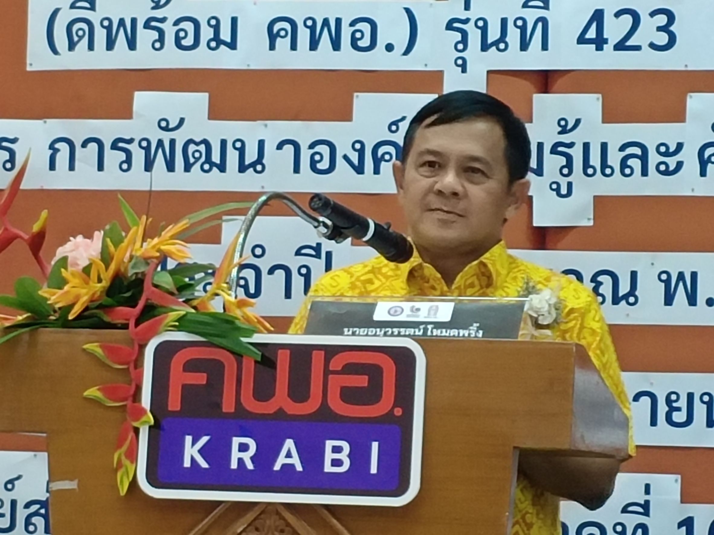นายอนุวรรตน์ โหมดพริ้ง รองผู้ว่าราชการจังหวัดกระบี่ เป็นประธานเปิดการฝึกอบรมเชิงปฏิบัติการหลักสูตร การพัฒนาผู้ประกอบการธุรกิจอุตสาหกรรมให้ดีพร้อม (ดีพร้อม คพอ.) ภายใต้โครงการ การพัฒนาองค์ความรู้และศักยภาพด้านการบริหารจัดการ