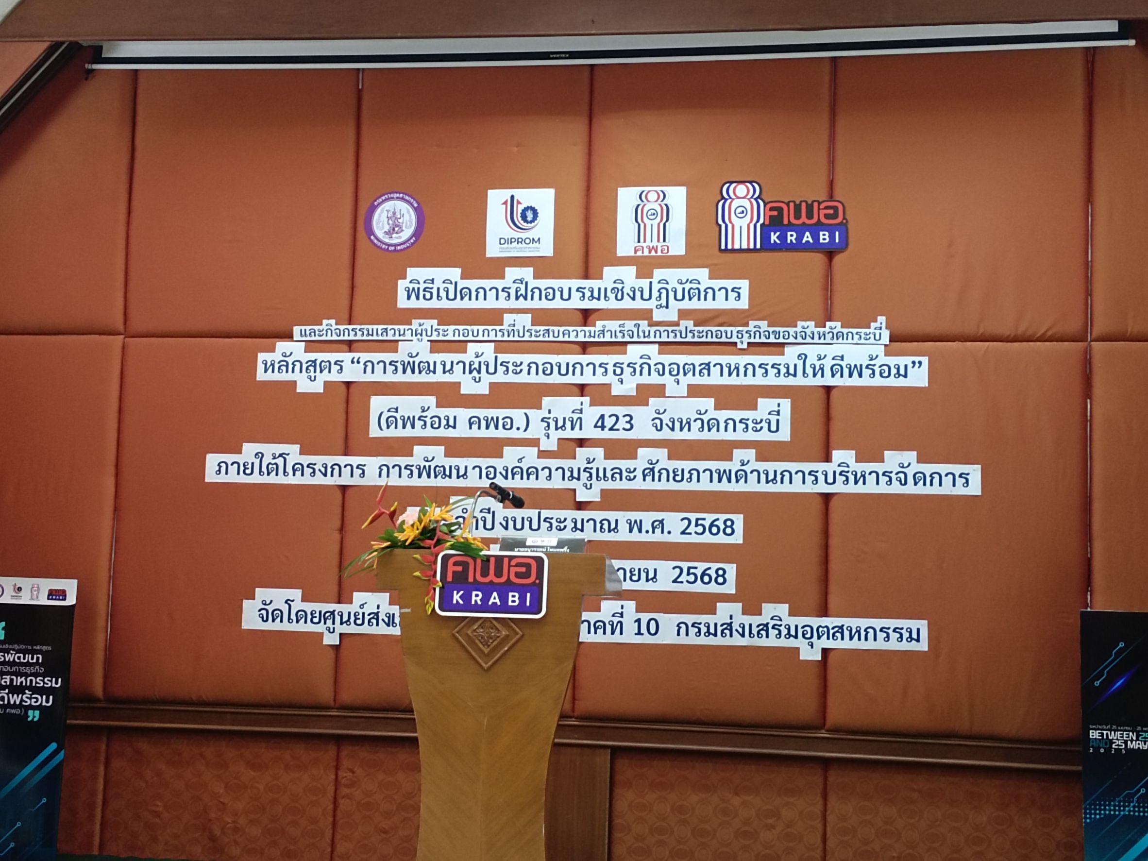 สำหรับการฝึกอบรมเชิงปฏิบัติการ หลักสูตรการพัฒนาผู้ประกอบการธุรกิจอุตสาหกรรมให้ดีพร้อม (ดีพร้อม คพอ.) กรมส่งเสริมอุตสาหกรรม ได้จัดขึ้นทั่วประเทศมาเป็นระยะเวลากว่า 40 ปี จำนวนรุ่นทั่วประเทศทั้งสิ้น 422 รุ่น โดยในพื้นที่รับผิดชอบของศูนย์ส่งเสริมอุตสาหกรรมภาคที่ 10 ได้จัดในจังหวัดกระบี่มาแล้ว จำนวน 5 รุ่น และในปีนี้คือรุ่นที่ 6 ของจังกระบี่ และเป็น รุ่นที่ 423 ของประเทศ