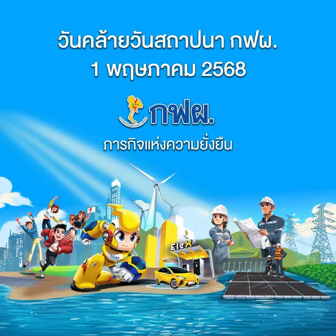 ️ นายเทพรัตน์ เทพพิทักษ์ ผู้ว่าการการไฟฟ้าฝ่ายผลิตแห่งประเทศไทย (กฟผ.) เปิดเผยว่า ในโอกาสวันที่ 1 พฤษภาคม 2568 เป็นวันคล้ายวันสถาปนา กฟผ. ครบรอบ 56 ปี กฟผ. ขอขอบคุณคนไทยทุกคนที่ไว้วางใจให้ กฟผ. ดูแลความมั่นคงของระบบไฟฟ้าไทย นับตั้งแต่กำลังผลิตเริ่มต้นเพียง 908 เมกะวัตต์ เมื่อครั้งก่อตั้งในวันที่ 1 พฤษภาคม 2512 จวบจนปัจจุบันประเทศไทยมีกำลังผลิตไฟฟ้าเพิ่มขึ้นเป็น 52,017 เมกะวัตต์ โดยเป็นโรงไฟฟ้าของ กฟผ. 16,261 เมกะวัตต์ คิดเป็นร้อยละ 31.26 มีสายส่งไฟฟ้าทั่วประเทศความยาวรวมถึง 40,041 วงจร-กิโลเมตร จนกลายเป็นอีกหนึ่งปัจจัยสำคัญในการขับเคลื่อนเศรษฐกิจและยกระดับคุณภาพชีวิตของคนไทย