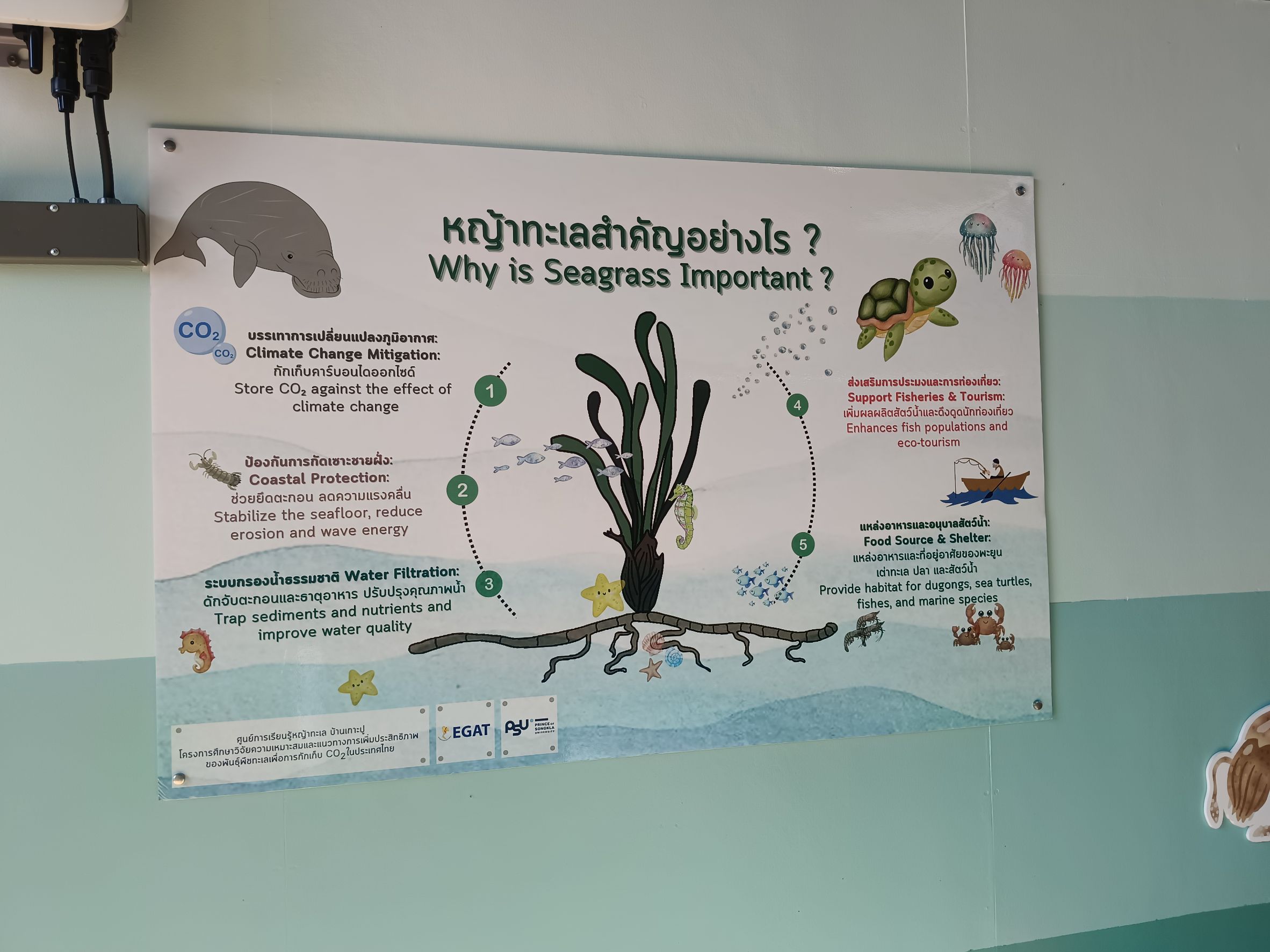 ศูนย์การเรียนรู้ฯ แห่งนี้ทำหน้าที่เป็น จุดศูนย์กลางในการวิจัย พัฒนา และถ่ายทอด องค์ความรู้ ด้านการฟื้นฟูแหล่งหญ้าทะเล โดยเน้นการอนุบาลกล้าหญ้าทะเล การออกแบบระบบอุปถัมภ์เพื่อส่งเสริมการเจริญเติบโต และการศึกษาศักยภาพของหญ้าทะเลในการกักเก็บคาร์บอนสีน้ำเงิน (Blue Carbon) ซึ่งมีบทบาทสำคัญในการลดก๊าซเรือนกระจกและชะลอภาวะโลกร้อน