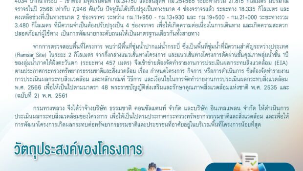กรมทางหลวงให้ความสำคัญกับการดำเนินโครงการควบคู่ไปกับการดูแลรักษาสิ่งแวดล้อม และรับฟังความคิดเห็นของประชาชนในพื้นที่อย่างต่อเนื่อง เพื่อให้การพัฒนาทางหลวงสายนี้เป็นไปอย่างยั่งยืนและเกิดประโยชน์สูงสุดต่อทุกภาคส่วน
