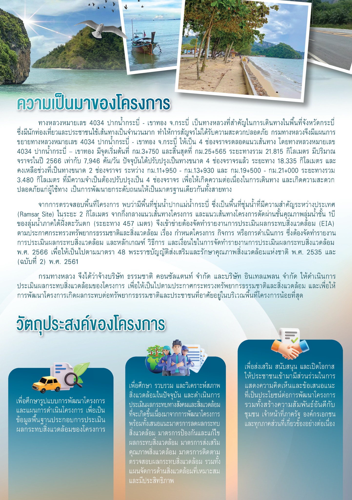 กรมทางหลวงเร่งพัฒนาทางหลวงหมายเลข 4034 กระบี่ ยกระดับการเดินทางและเศรษฐกิจ