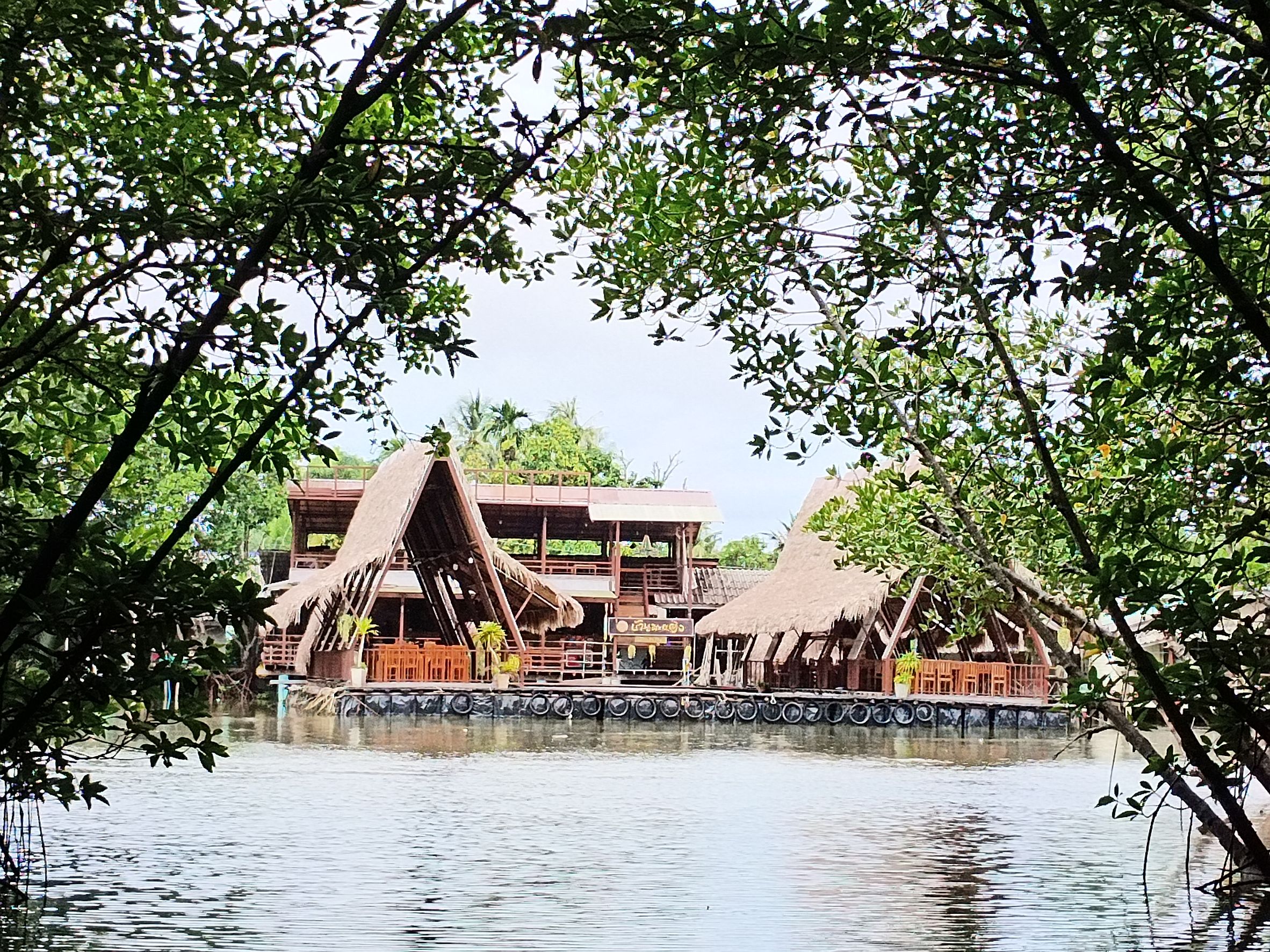 คณะฯ นั่งเรือต่อไป ชมบรรยากาศเมืองริมแม่น้ำ ลอดอุโมงค์ป่าโกงกางที่สมบูรณ์และสวยงาม ขึ้นท่าเทียบเรือ หมู่บ้าน *ท่าหิน* นั่งรถสามล้อ * ซาเล้ง * ยานพาหนะประจำหมู่บ้านไปสู่เป้าหมายตามโปรแกรม