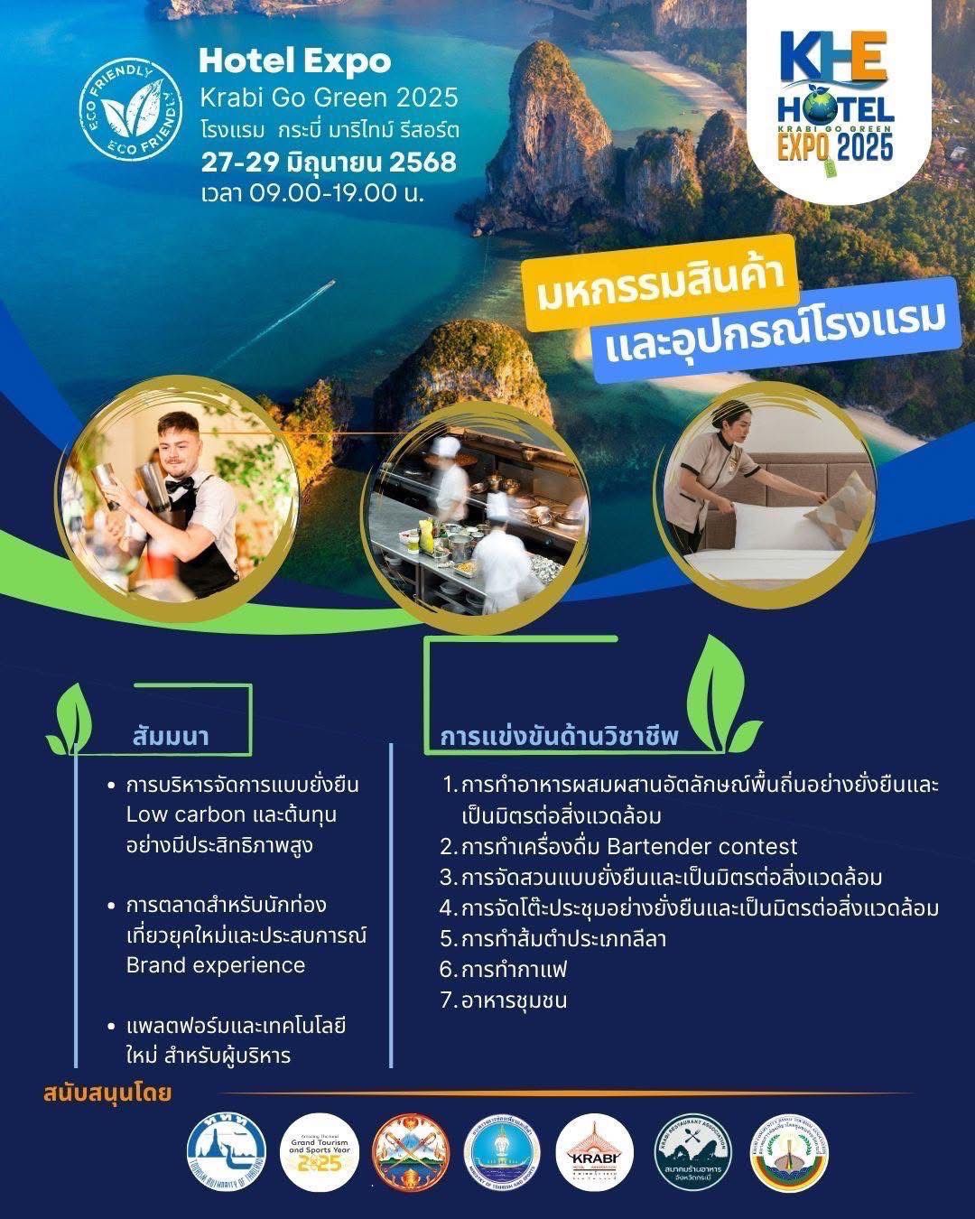 Join us at the Krabi Hotel Expo 2025 “Krabi Go Green” June 27–29, 2025 | 09:00–19:00 hrs. At Krabi Maritime Resort